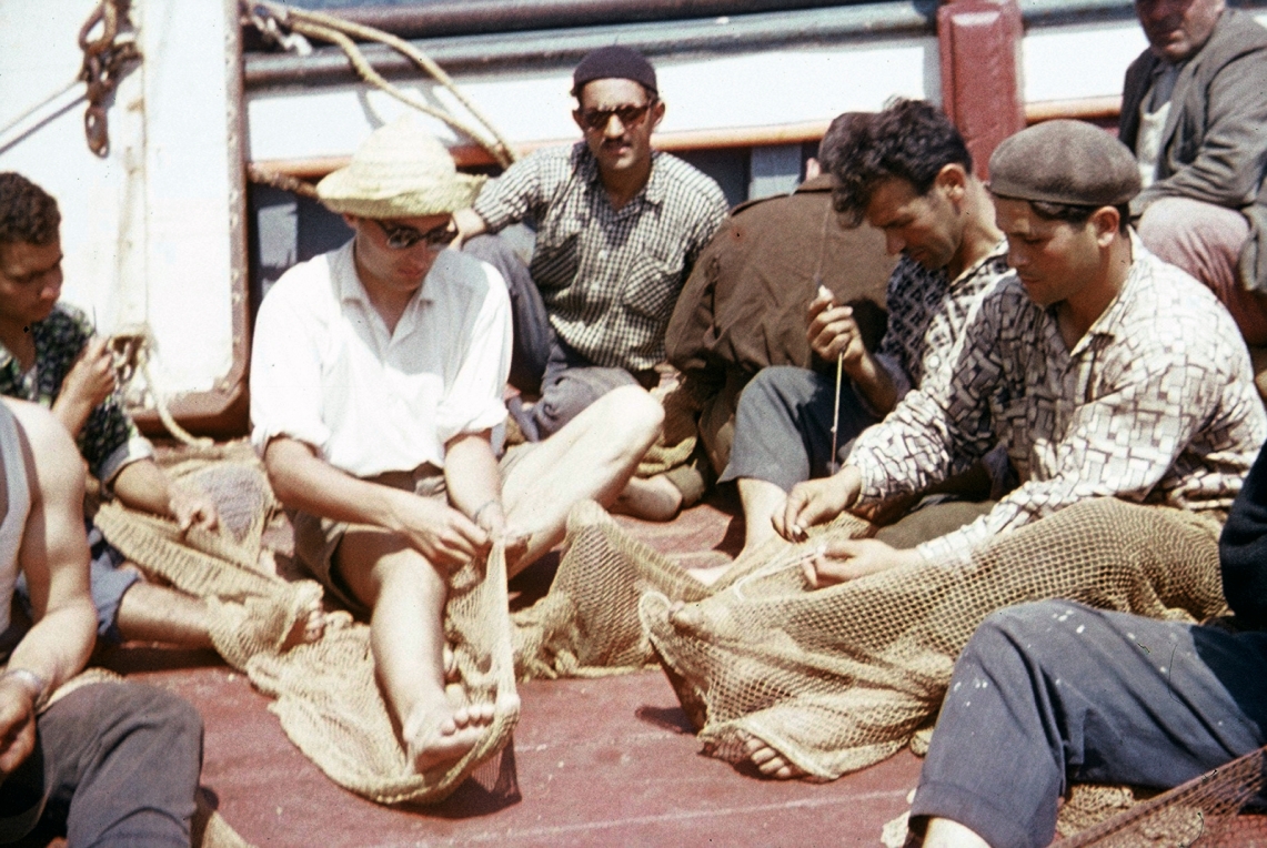 Mit griechischen Fischern vor der Küste Libyens, 1960.