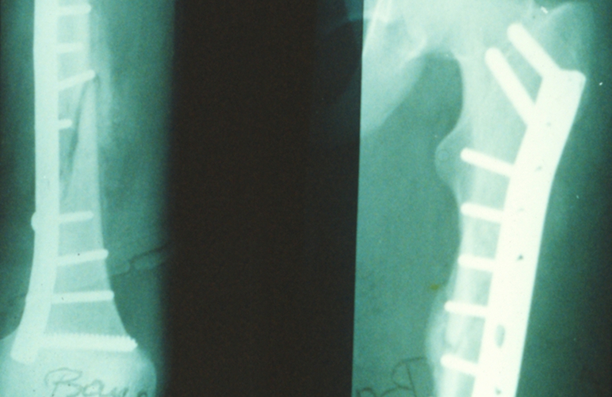 Röntgenbild nach beidseitiger Osteosynthese. Patient bewegt beide Beine wieder ohne Einschränkungen.